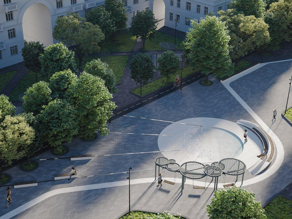 Фонтан на проспекте тоже будет необычным. Его форма вдохновлена образом спутника, а зоны отдыха вокруг него будут символизировать небесные тела. Кроме того, в малых архитектурных формах появятся элементы, напоминающие поле для игры в шашки — это отсылка к популярности шашечного движения в городе.