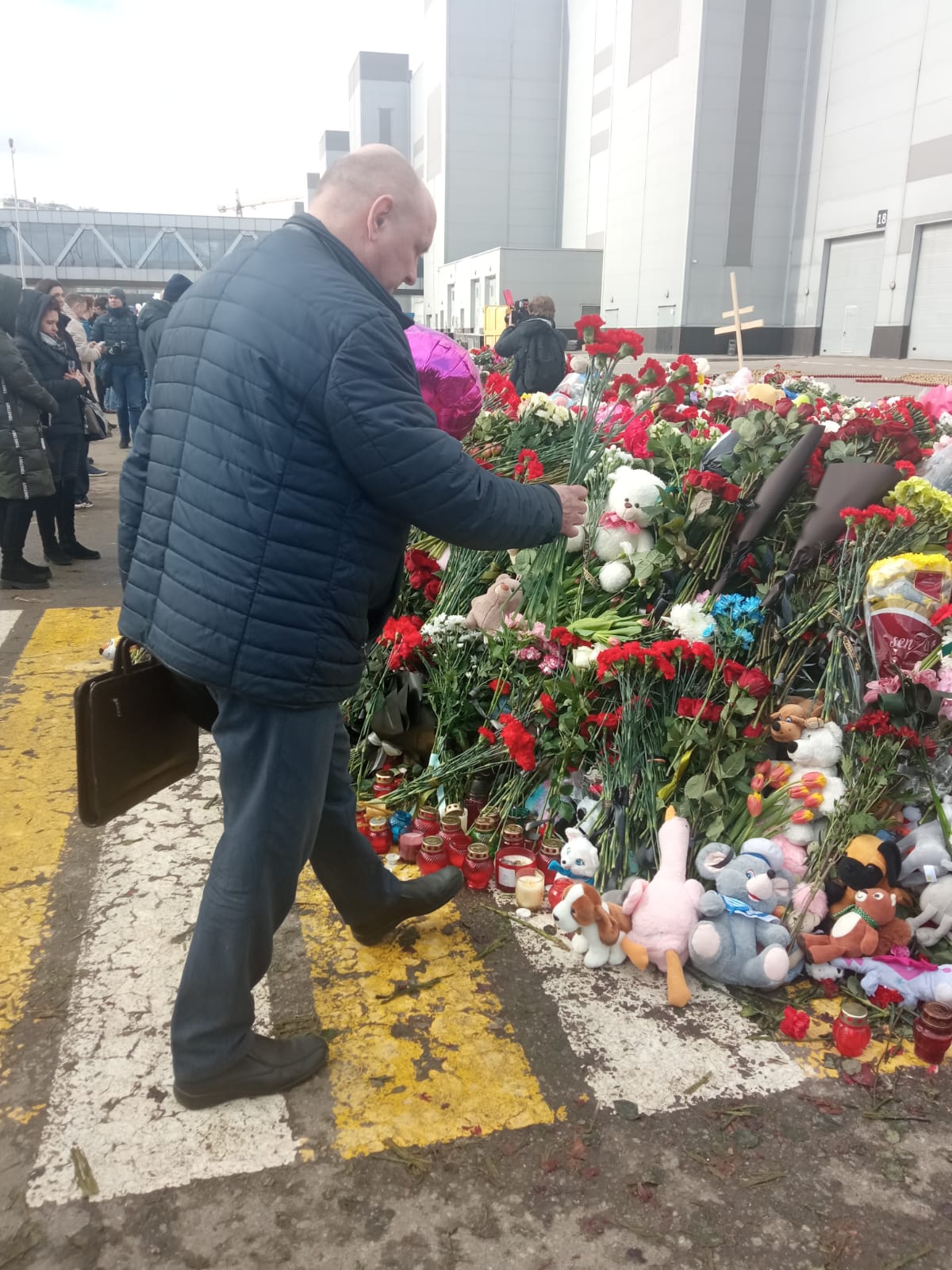 По поручению коммунистов Ногинска, а также членов Ногинского отделения «Союза Советских Офицеров», первый секретарь Ногинского ГК КПРФ А.П. Кацай возложил цветы к стихийному мемориалу погибшим у сгоревшего здания «Крокус Сити Холла».