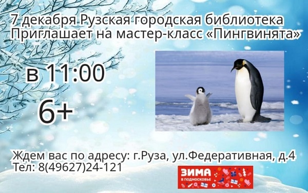 В Рузской городской библиотеке 7 декабря в 11 часов состоится мастер-класс «Пингвинята» в рамках библиомикса «Волшебный квадратик».