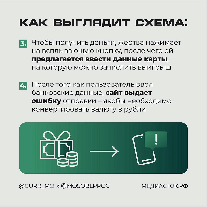 - Чтобы получить приз, жертвы должны отправить свои личные данные или внести небольшую плату.