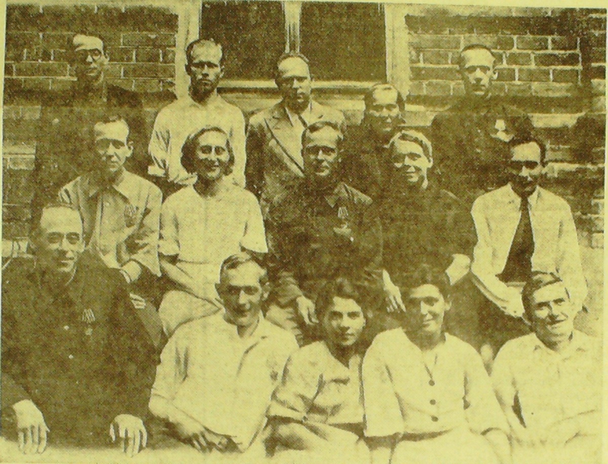 На старой фотографии, опубликованной в районной газете «Знамя Ильича», — работники Наро-Фоминского горкома партии. Они принимали участие в защите города Наро-Фоминска в годы Великой Отечественной войны и в партизанском движении. Жаль, что фото к газетной публикации не подписано и не указаны имена тех, кто на нём изображён.