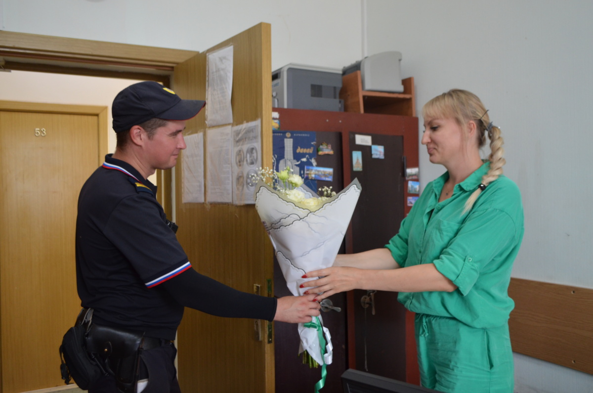 Полицейские подарили женщинам цветы, поздравили с праздником и пожелали успехов в службе и семейного благополучия.