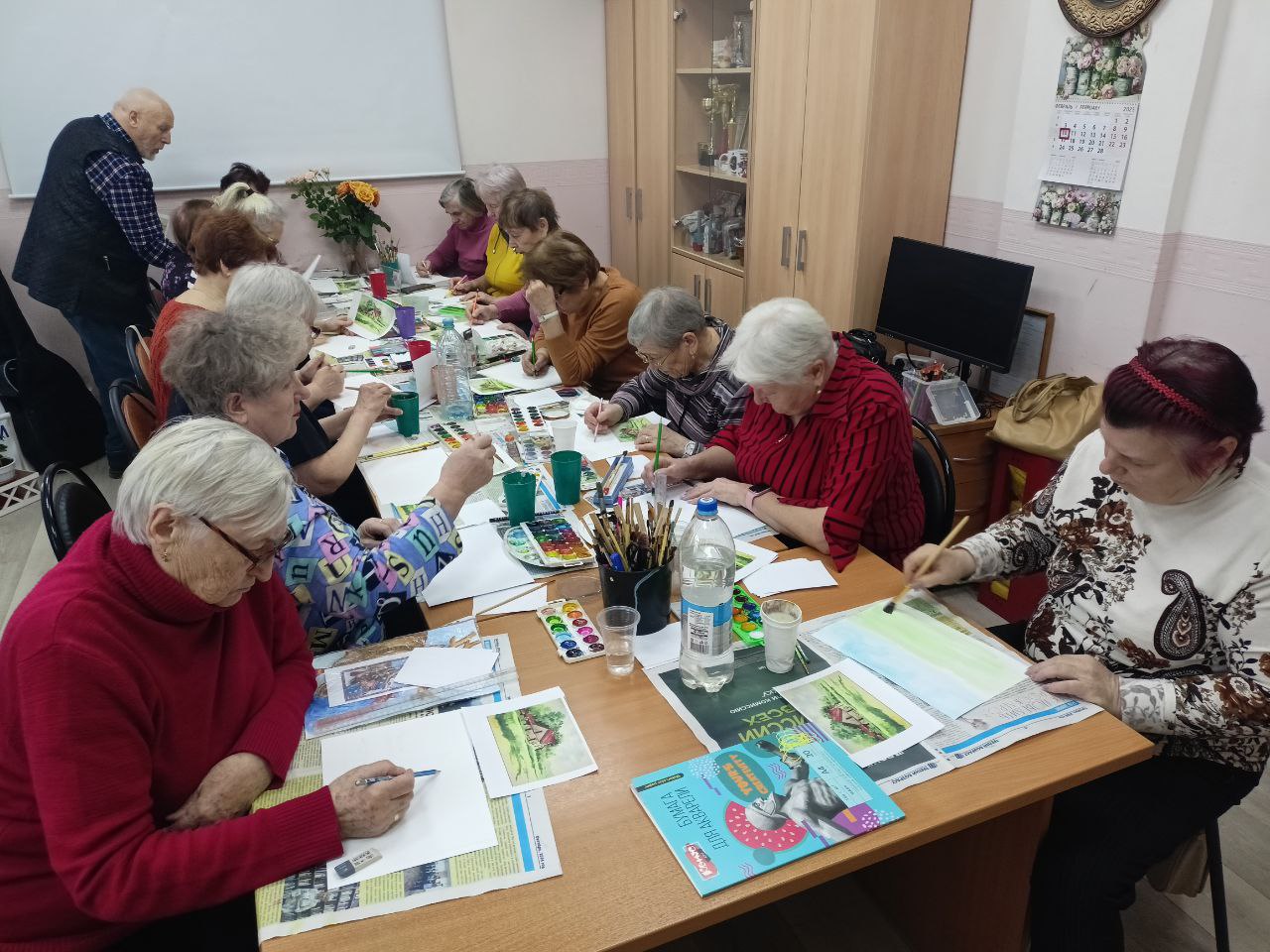 Участники программы «Активное долголетие» Рузского муниципального округа в арт-мастерской «Вдохновение» рисовали акварельный пейзаж.