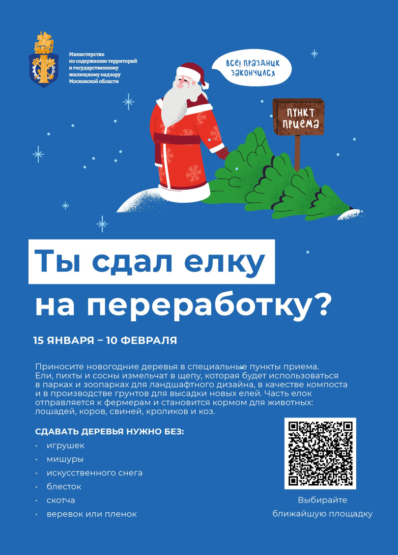 15 января 2025г. в г.о. Лосино-Петровский, как и во всей Московской области, стартует акция «Сдай на переработку и елки, и иголки!».