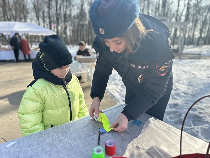 Автоинспекторы организовали мастер-класс по изготовлению тематических световозвращающих элементов и совместно с волонтерами раздавали фликеры посетителям парка.
