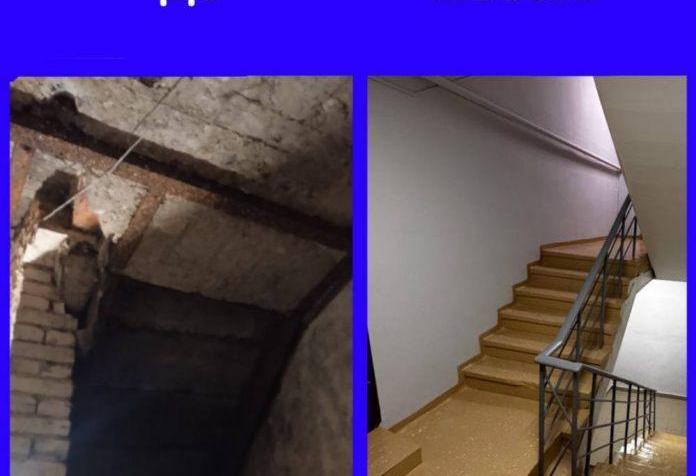 Кроме того, рабочие отремонтировали площадку между первым и вторым этажами, провели штукатурку и покраску стен.