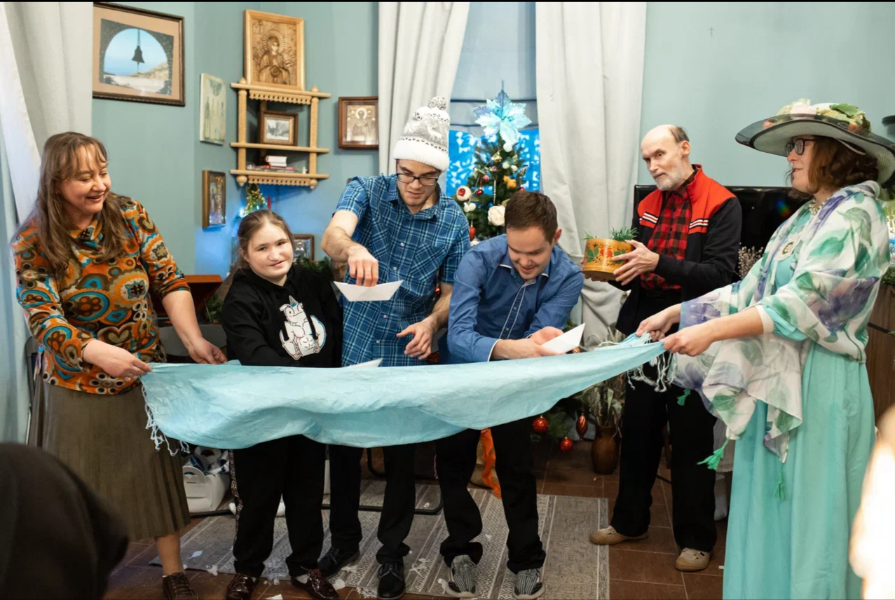 В Пучкове в благодарность гостям устроили чаепитие. А актёры театра «Видящие сердцем», который существует уже 7 лет под руководством волонтёра Светланы Анисифоровой, показали рождественский мини-спектакль «Всему своё время». Такой вид творчества помогает обитателям Дома слепоглухих адаптироваться в окружающем мире, чувствовать себя увереннее, учит общению и дружбе. «Мы сами пишем сценарии, шьём костюмы, мастерим декорации, – сообщила Светлана. – А недавно начали выступать даже за пределами Дома, наш театр знают в Троицком музее, Центре московского долголетия, в «Точке кипения» и даже в ДШИ им. Глинки, там мы выступали в Международный день инвалидов».