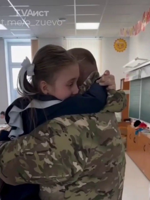 На день рождения дочки папа сюрпризом приехал домой из зоны СВО. Папа — профессиональный военный, капитан, служит в 150-м отдельном ремонтно-восстановительном батальоне ВДВ.