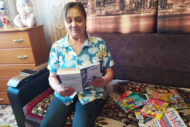 Библиотекарь сама приносит книжные новинки пенсионерам, и они с большим увлечением их читают. Чтение – это прекрасная тренировка памяти и мышления. А художественная литература обогащает внутренний мир.
