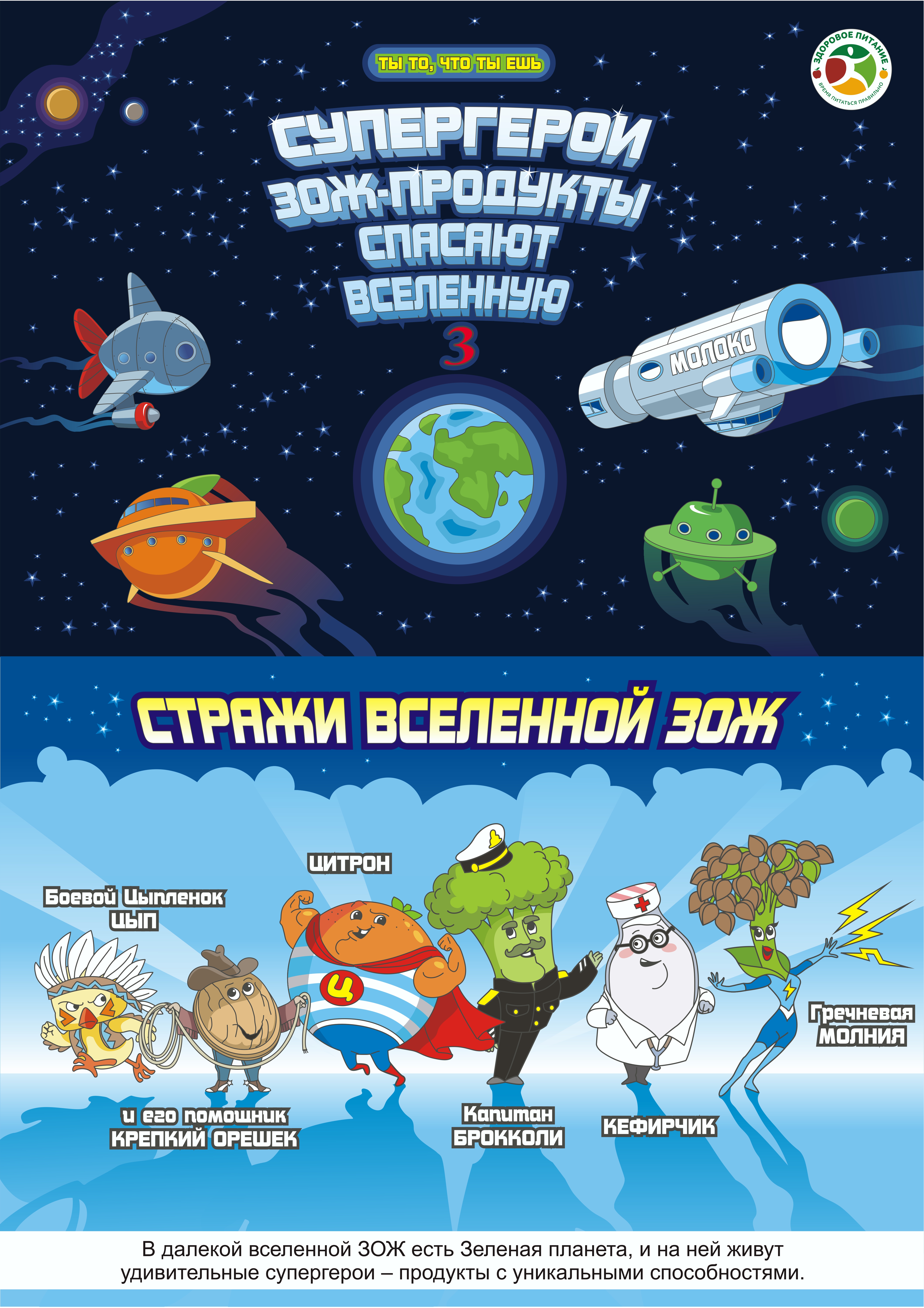 Первый комикс серии «Супергерои ЗОЖ-продукты спасают вселенную» увидел свет 16 октября 2024 года, во Всемирный день здорового питания, и успел стать очень популярным не только среди детей, но и в родительских сообществах.