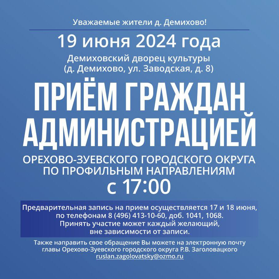 Выездная администрация будет работать в д. Демихово 19 июня выездная администрация проведет прием жителей в деревне Демихово.