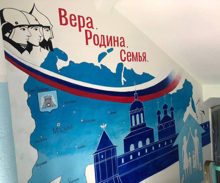 «Мы надеемся, что наша работа не оставит равнодушными жителей, преобразит интерьер подъезда и будет способствовать патриотическому воспитанию подрастающего поколения», — рассказывают художники.