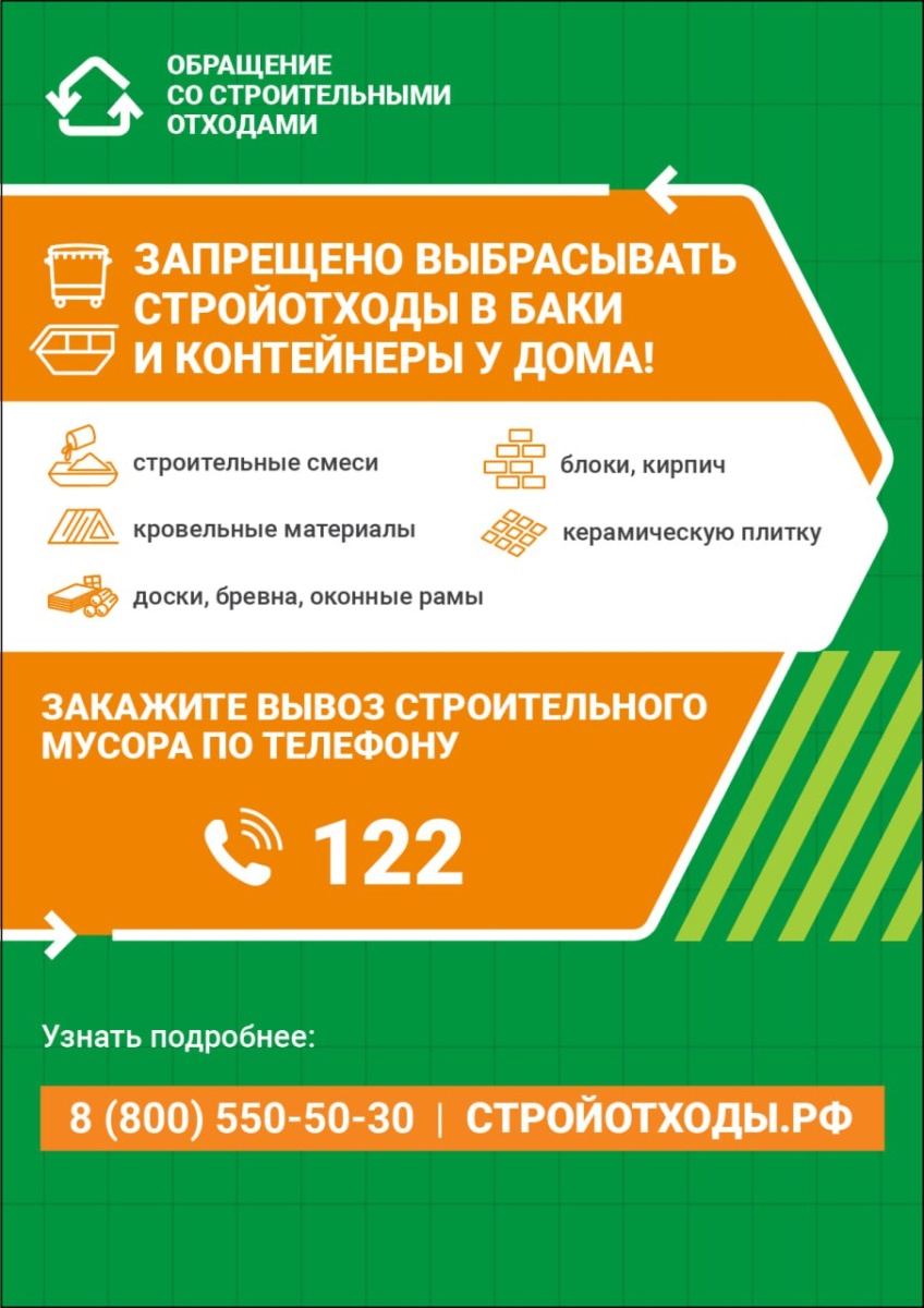 Жителям напоминают о важности правильной утилизации строительных материалов.