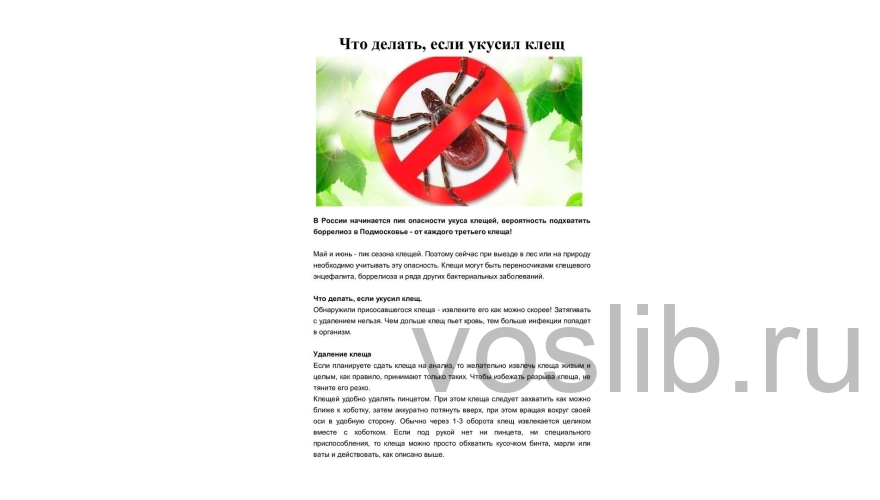 Что делать, если укусил клещ В России начинается пик опасности укуса клещей, вероятность подхватить боррелиоз в Подмосковье - от каждого третьего клеща!
