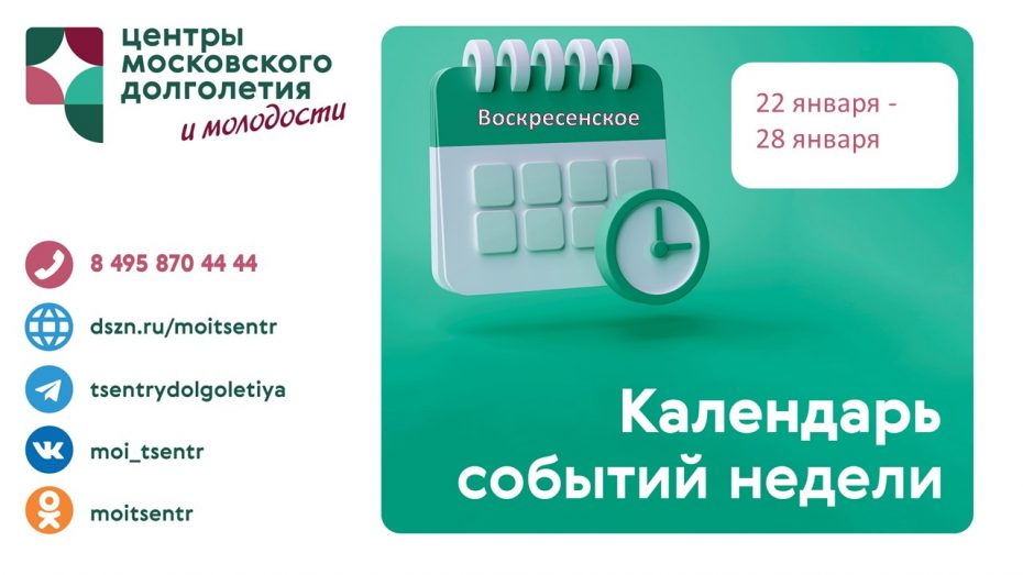Расписанием мероприятий на неделю поделились специалисты Центра московского долголетия в Воскресенском с 22-28 января